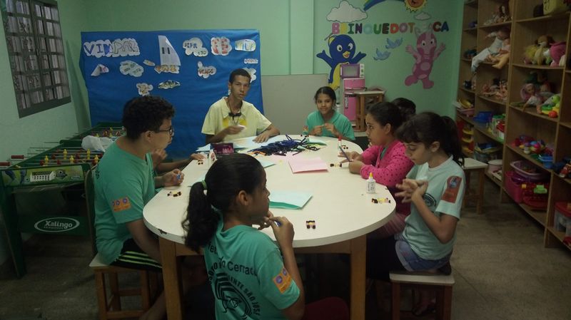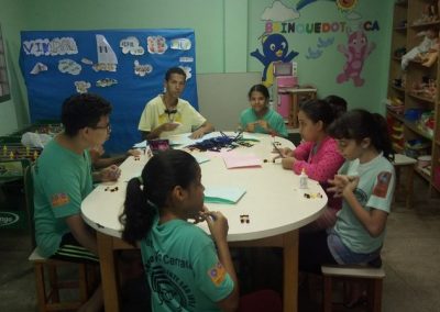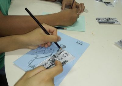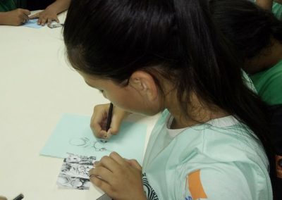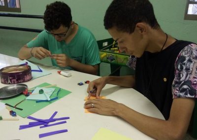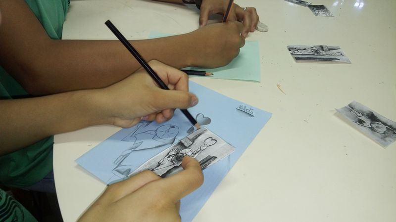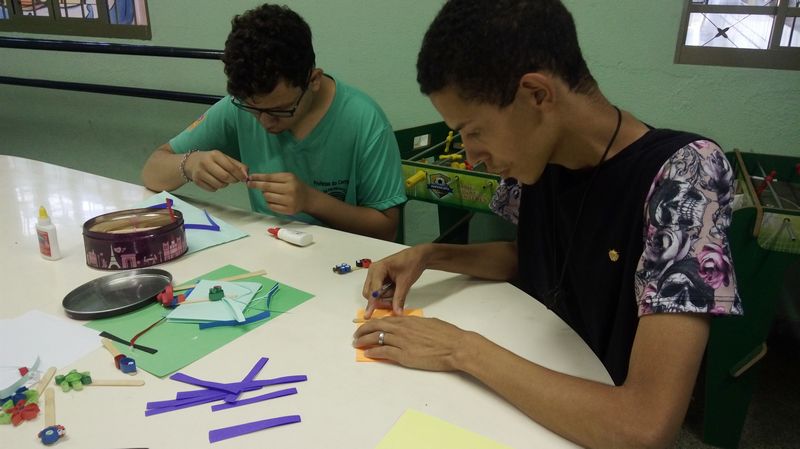 momento de prática com pintura, desenhos, dobraduras, numa releitura das obras dos autores estudados. A cada final de semestre acontece uma mostra cultural com exposição das obras produzidas pelas crianças e adolescentes.